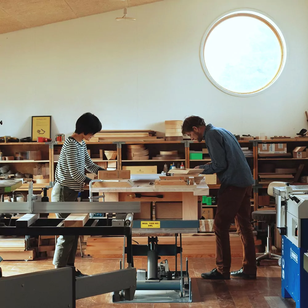 Ẩn mình giữa vùng đồng quê yên bình phía Bắc Copenhagen là xưởng mộc của hai nghệ nhân Akiko Kuwahata và Ken Winther. Mang trong mình hai nền văn hóa tưởng chừng đối lập, một đến từ Nhật Bản – cái nôi của triết lý wabi-sabi và thủ công tối giản, một từ Đan Mạch – quê hương của thiết kế hiện đại chú trọng công năng, họ đã cùng nhau sáng lập Akiko Ken Made – một thương hiệu thủ công gỗ tôn vinh vẻ đẹp bền vững, giản dị và tràn đầy nhân tính.