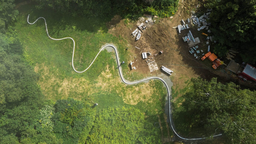 Trong những năm gần đây, Goldsworthy mở rộng ngôn ngữ bằng cách “mượn” chính vật liệu của hạ tầng đô thị. Road Line (2024) tại College of the Atlantic (Maine) dùng đá bó vỉa tiêu chuẩn của Sở Giao thông, cắt uốn thành một đường sóng dài chạy xuyên khuôn viên đến gần vịnh Frenchman.