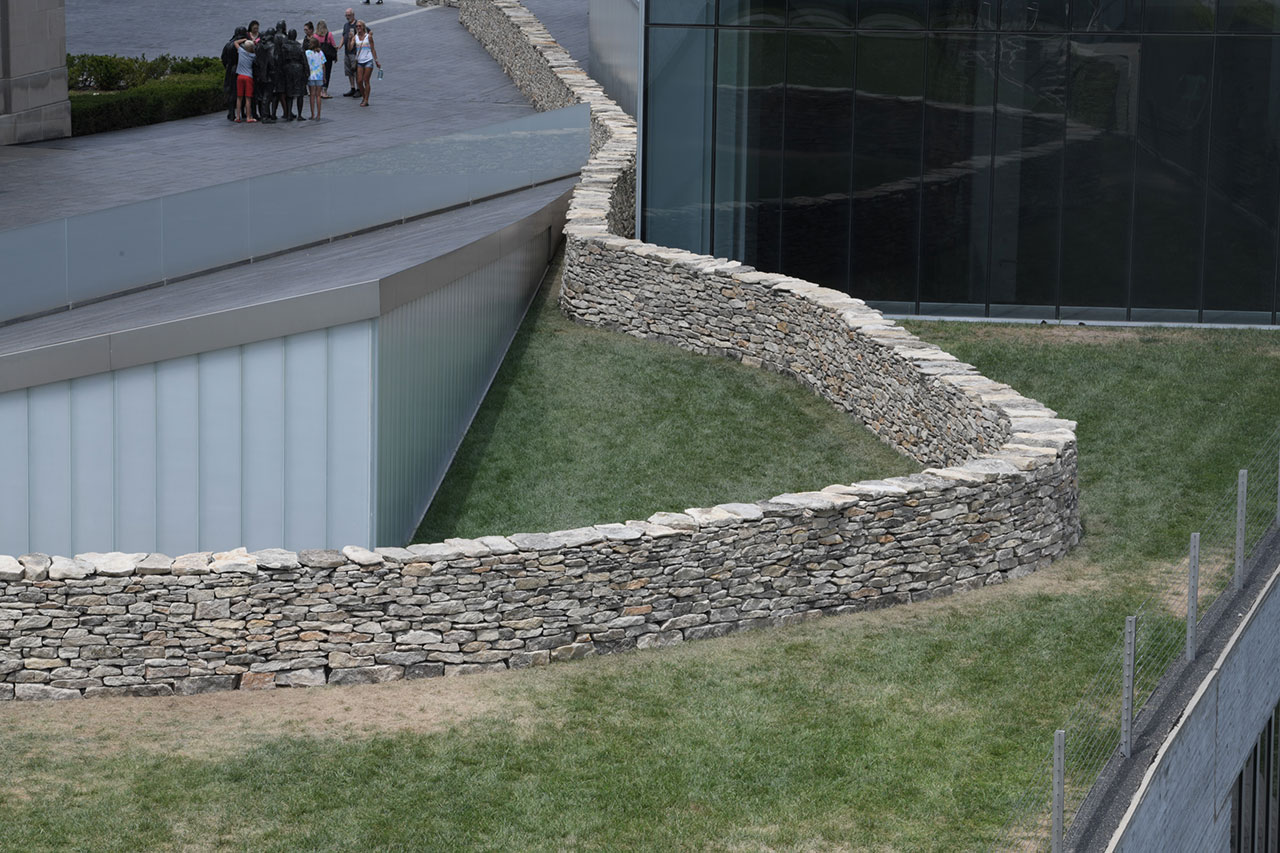 Quy mô lớn, nhưng không có tham vọng đè bẹp người xem; thay vào đó, đường cong chậm rãi của tường khiến mắt dõi theo, cơ thể tự bước cùng, và bỗng nhận ra địa hình vốn dĩ đã có chất kiến trúc. Tư liệu của Storm King ghi rõ đây là ủy nhiệm thường trực đầu tiên của ông tại một bảo tàng ở Mỹ, dài 2.278 feet, làm từ 1.579 tấn đá, những con số khô khan này lại cho thấy một sự “kiến thiết mềm”: sức bền đến từ hiểu biết và tôn trọng vật liệu.