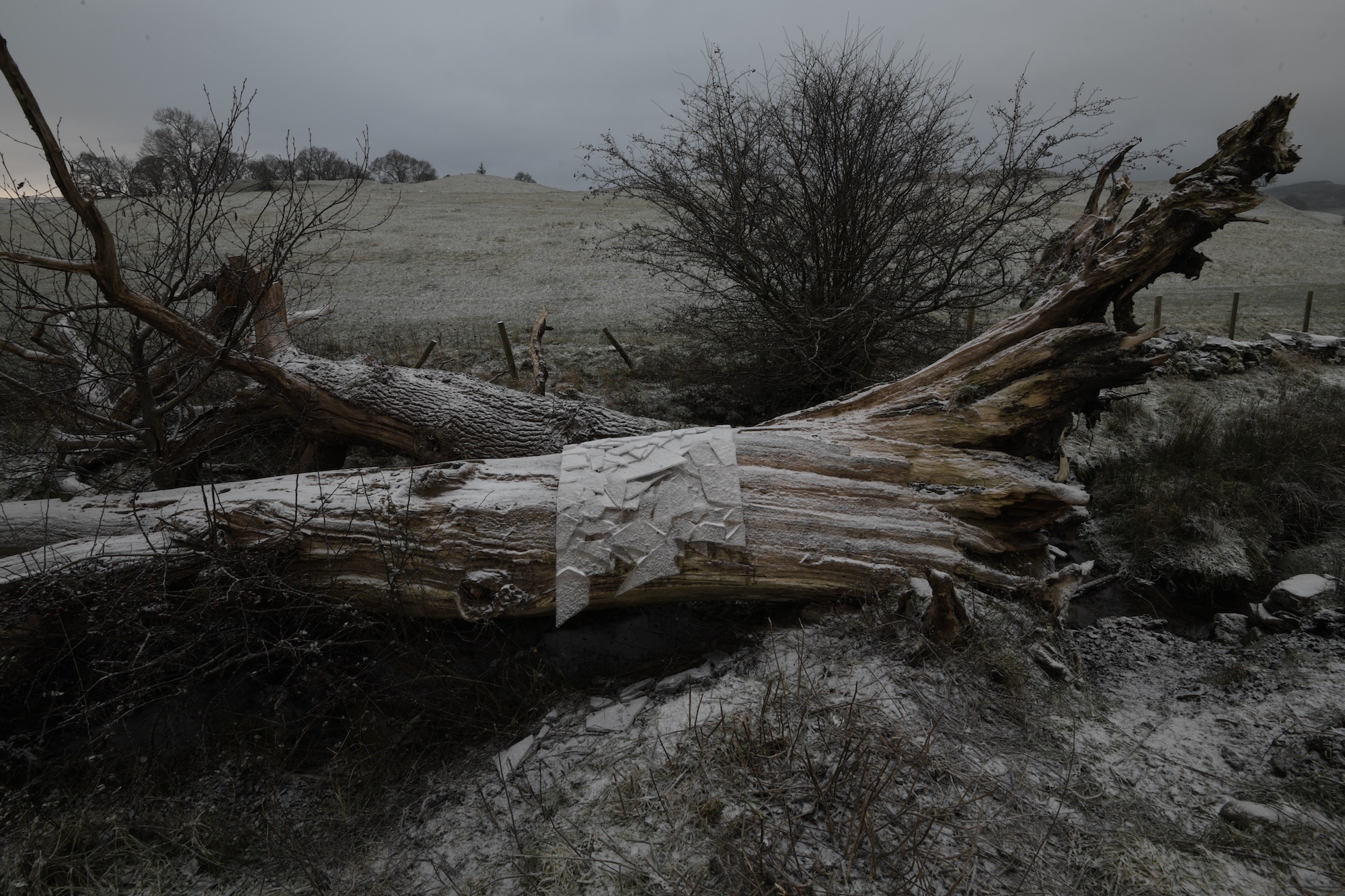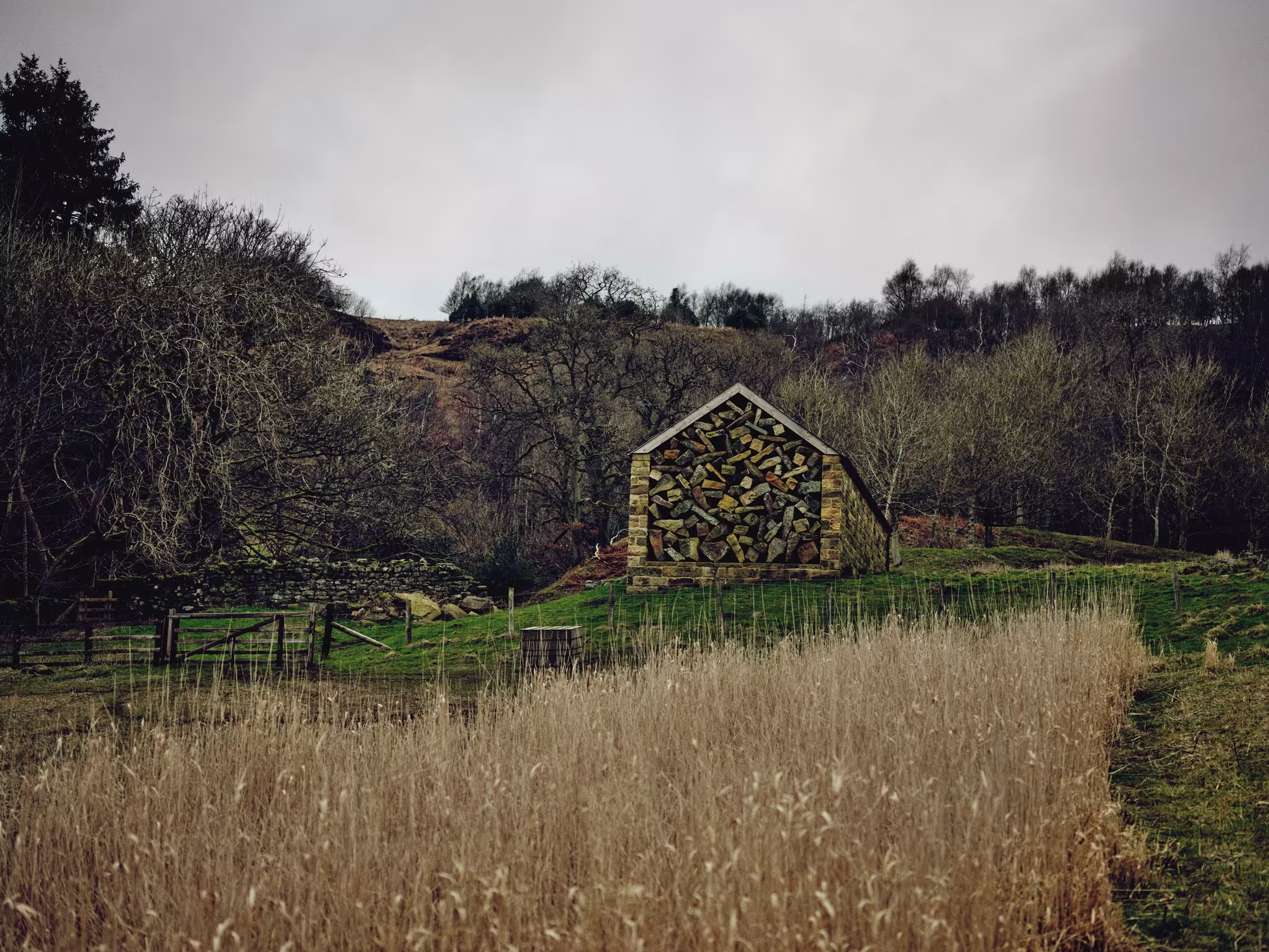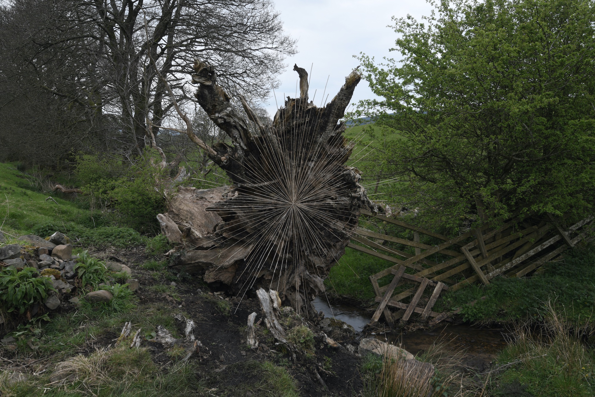 Một dự án dày tầng mà báo chí Anh và các gallery đã liên tục cập nhật là Hanging Stones ở North York Moors, nơi mười công trình/nhà đá cải tạo liên kết với nhau qua một đường đi sáu dặm. Mỗi nhà chứa một can thiệp cụ thể bằng vật liệu địa phương: đá cát, cành khô, rễ, dây thép gai.