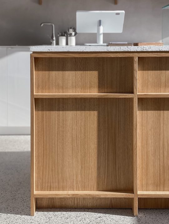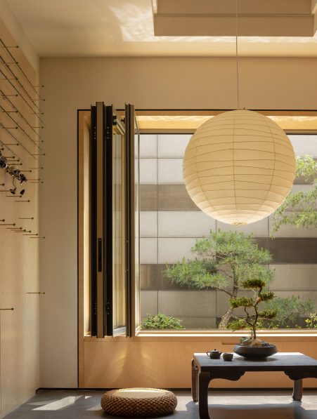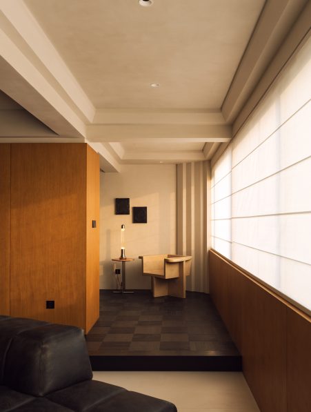 Studio tọa lạc trong một tòa nhà văn phòng, vị trí nằm giữa hai bức tường ngoài của tòa nhà hình thành nên một khoảng trống.