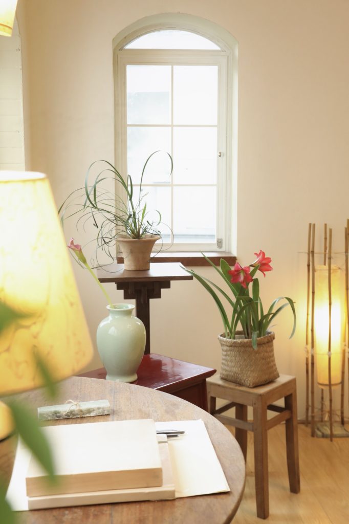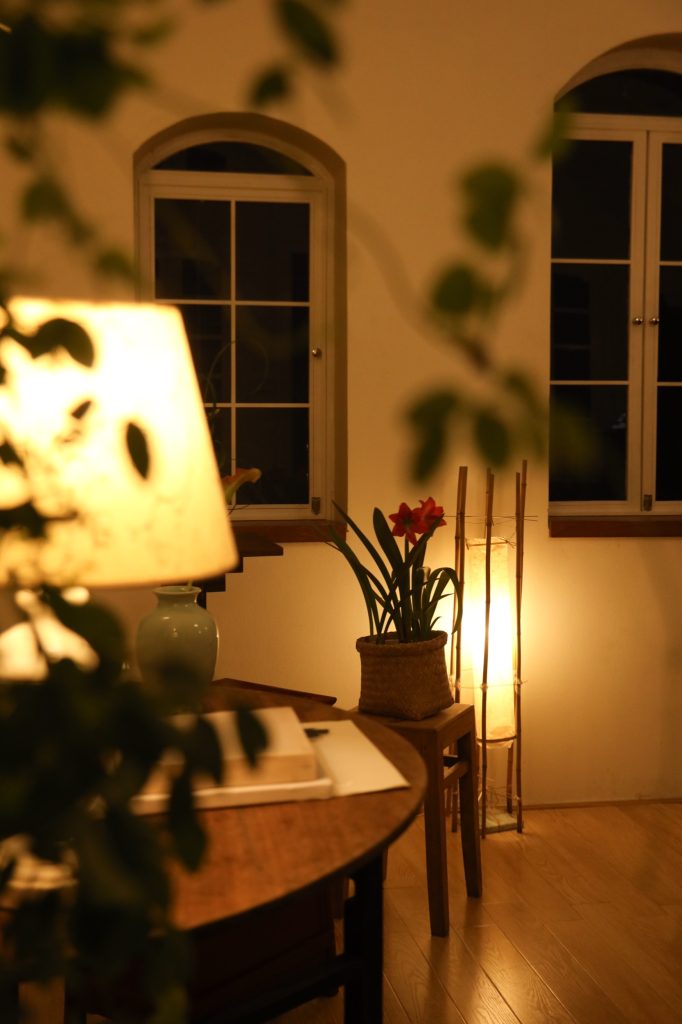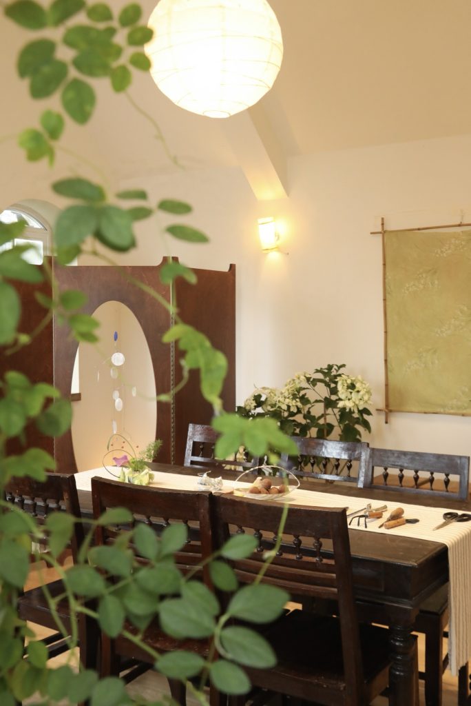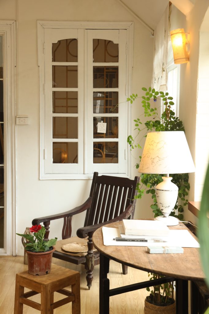 Không gian được thiết kế theo tinh thần tối giản Á Đông, hòa quyện sự mộc mạc của truyền thống Việt Nam với sự tinh tế của phong cách Scandinavian. Chiếc bàn gỗ mộc mạc ở trung tâm căn phòng như giữ nhịp cho toàn bộ không gian, xung quanh là những món nội thất được sưu tầm từ ba miền đất nước, xen lẫn những thiết kế mới chỉ vừa ra đời. Chất liệu tự nhiên như gỗ, gốm, tre, vải cùng ánh sáng chan hòa tạo nên một bầu không khí bình dị và gần gũi.