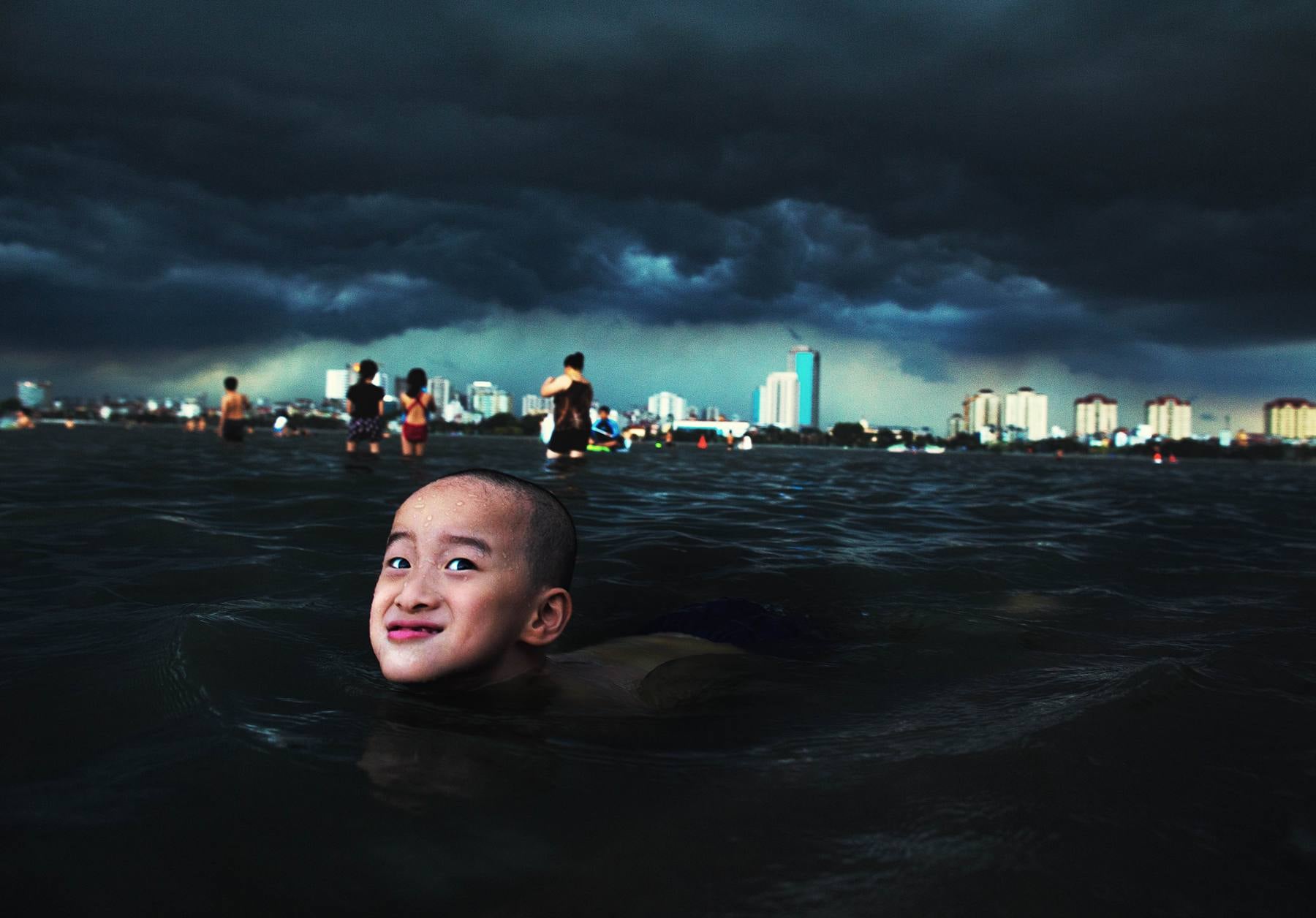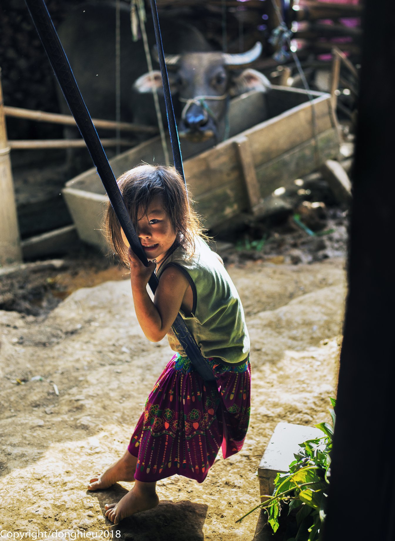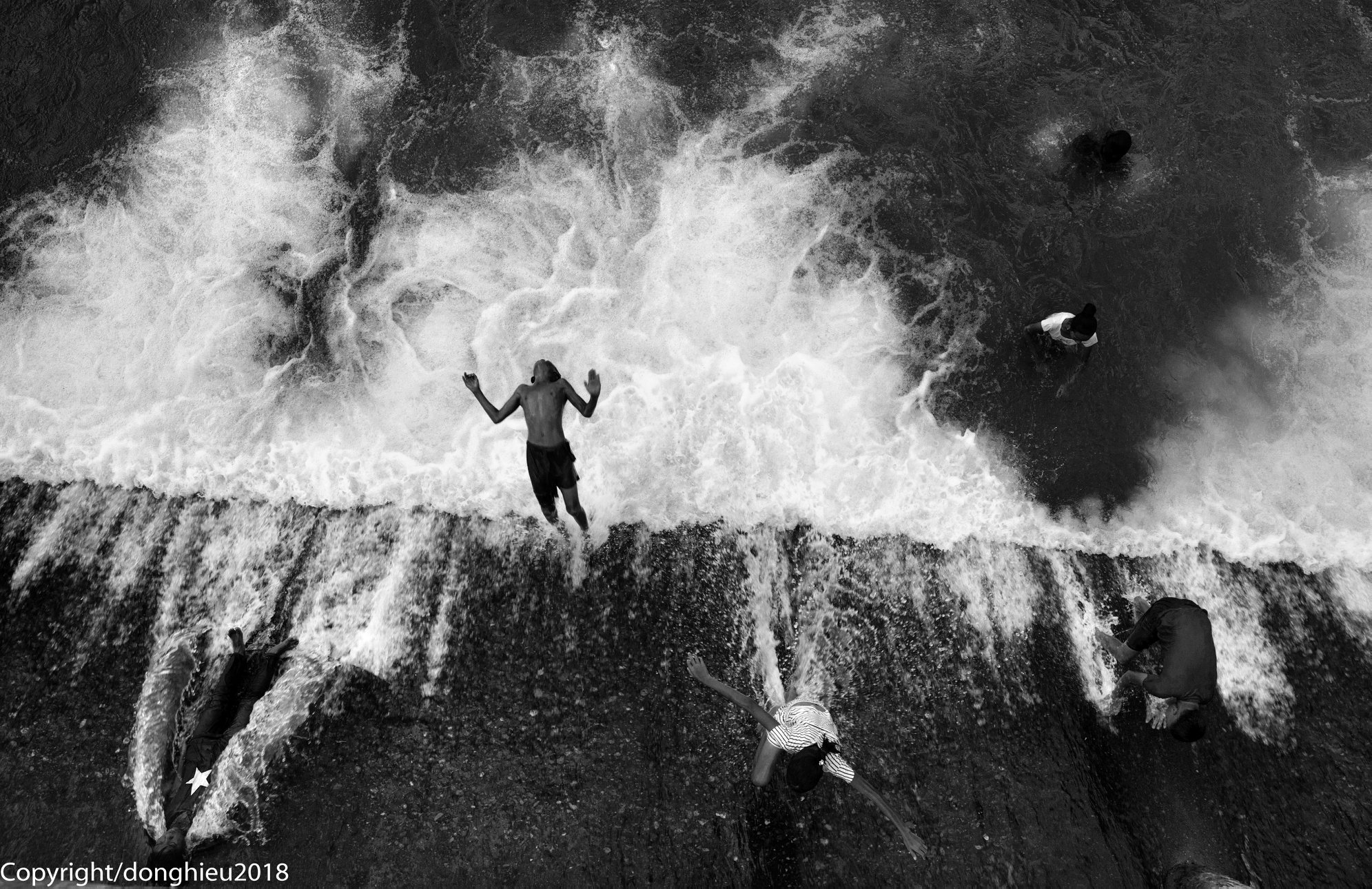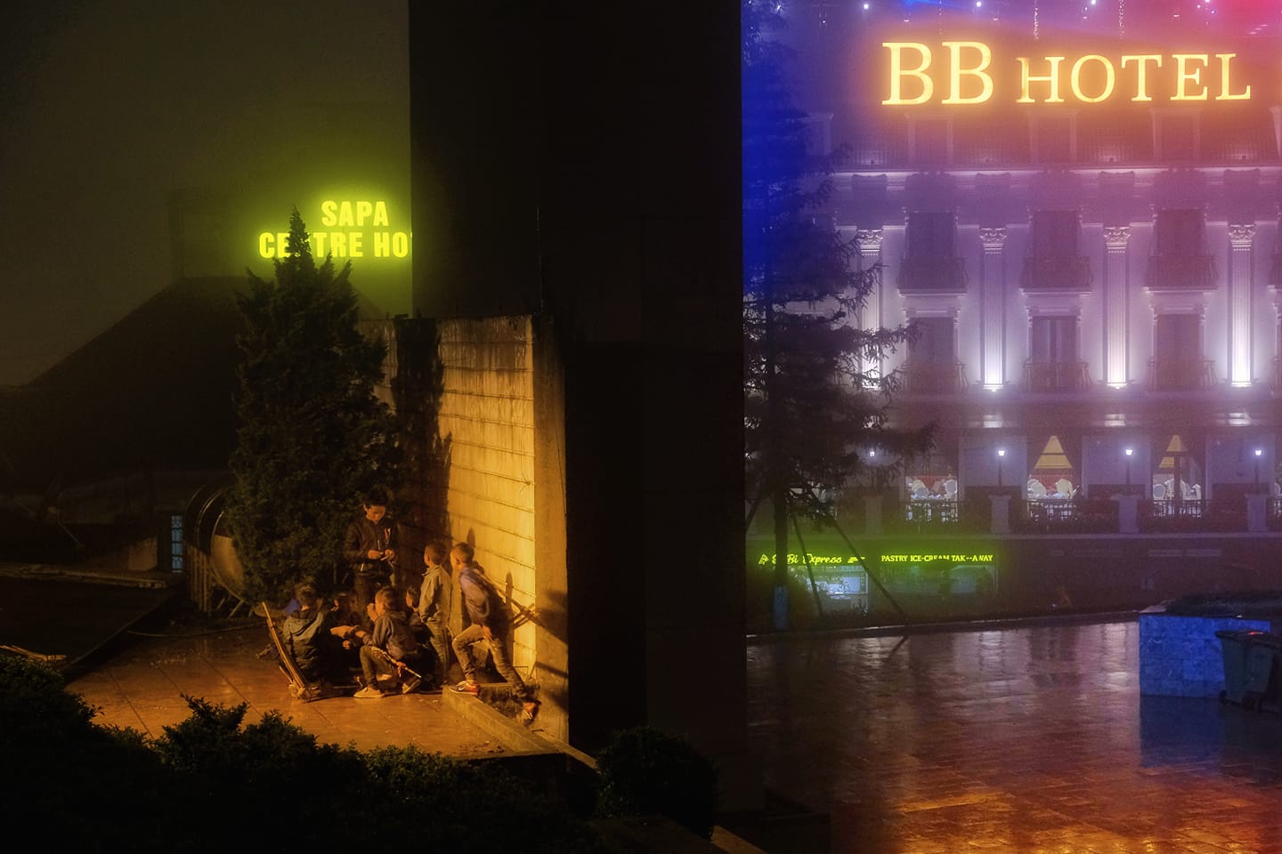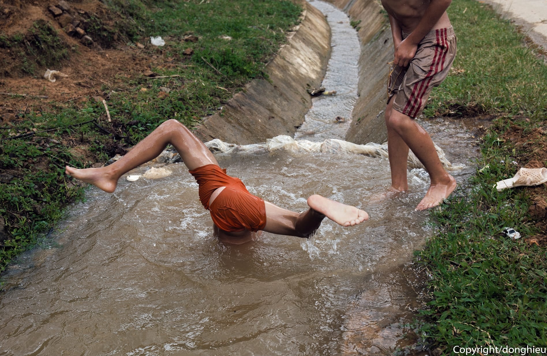 Đồng Hiếu: Mỗi bức ảnh đều có một câu chuyện. Bức ảnh trẻ con tắm suối ở miền núi, tôi chụp khi thấy lũ trẻ nghịch ngợm, chặn mạch nước để tắm. Chúng mặc quần thủng đít, trông rất vui nhộn nhưng cũng đầy chất đời. Hay bức ảnh lũ trẻ chia tiền ở quảng trường, tôi chụp tại Sa Pa, tận dụng ánh sáng từ đèn quảng cáo để tạo không gian đặc biệt. Bức ảnh trông như được sắp đặt, nhưng thực ra là khoảnh khắc tự nhiên.