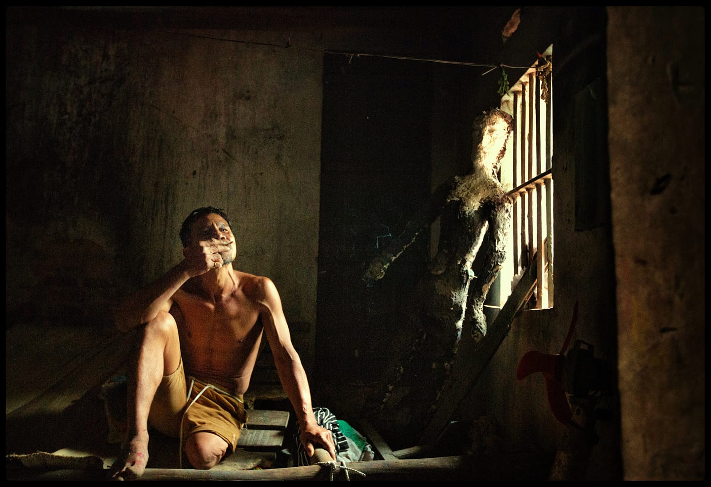 Hay như đợt tôi chụp chân dung anh Ý Điên – một nhân vật được nhiều người biết đến qua các giai thoại ở trường Mỹ thuật Yết Kiêu. Anh ấy là một người tài năng nhưng cuộc đời đầy biến cố. Ý Điên từng bị tai nạn mất một chân, và sau đó, hai người vợ đã rời bỏ anh ấy. Bị ám ảnh bởi tình yêu, Ý Điên thường treo những bức tranh vẽ trên mái nhà và nằm ngắm chúng. Một dịp sang thăm anh, tôi chụp được một khoảnh khắc rất đặc biệt: Ý Điên đang cười, kể về những mối tình cũ, bên cạnh là một con hình nộm của người yêu cũ đặt gần cửa sổ. Sau đó, có một anh Việt kiều Canada liên hệ với tôi. Anh ấy nói bức ảnh này truyền cho anh ta cảm giác tích cực, muốn mua để treo ở nhà, đặc biệt vì vợ anh ấy vừa qua đời. Tôi rất cảm động và định tặng bức ảnh, nhưng người này khăng khăng trả tiền vì tôn trọng công sức của nhiếp ảnh gia. Cuối cùng, tôi bán bức ảnh với giá tượng trưng một đô la. Khoảng 30 phút sau, người đó gửi lại một phong bì chứa một đô la và hai chai rượu. Những câu chuyện như thế làm tôi cảm thấy nghề nhiếp ảnh thật ý nghĩa và tràn đầy niềm vui.
